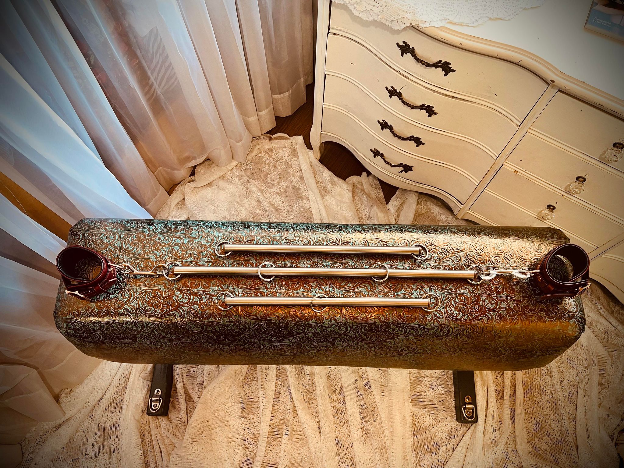 These are built to last. Full 304 Stainless steel, bar and rings, TIG welded rings to ensure THEY don’t spread open LOL get it??!! …. Beautiful solid walnut end plugs, no… not butt plugs… END plugs lol to make sure there is no sharp edges. Very Rigid and VERY strong. Brushed 3/4" stainless body. Perfect for Bondage of all kinds, cuffs or rope play. Very fun and versatile and don’t worry, we offer a few sizes and combo packs!