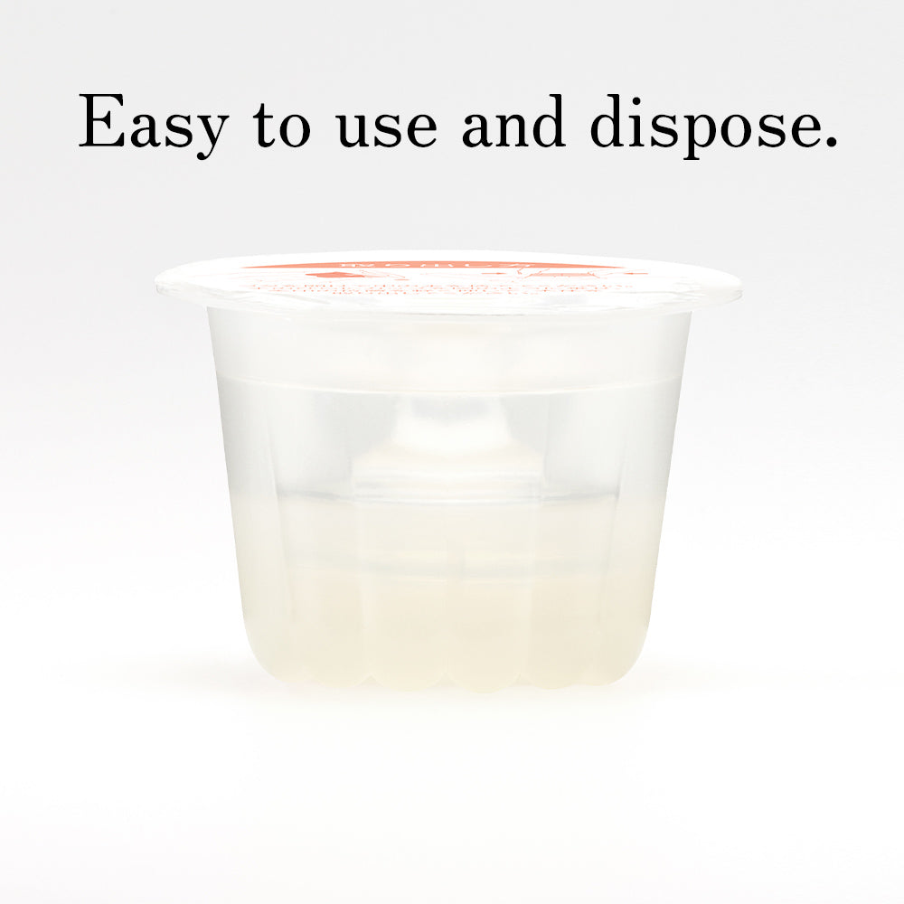 ① Gently peel off the Lid while holding the Cup in one hand. ※Please take care when opening the item as water may spill from the Cup.