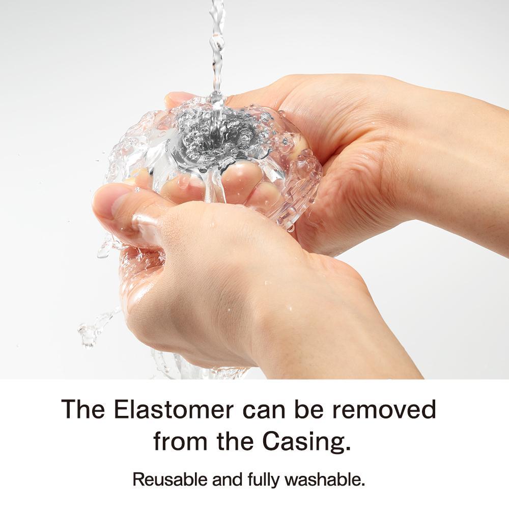 The highly elastic ring embedded in the elastomer body keeps air inside and produces enveloping pleasure.